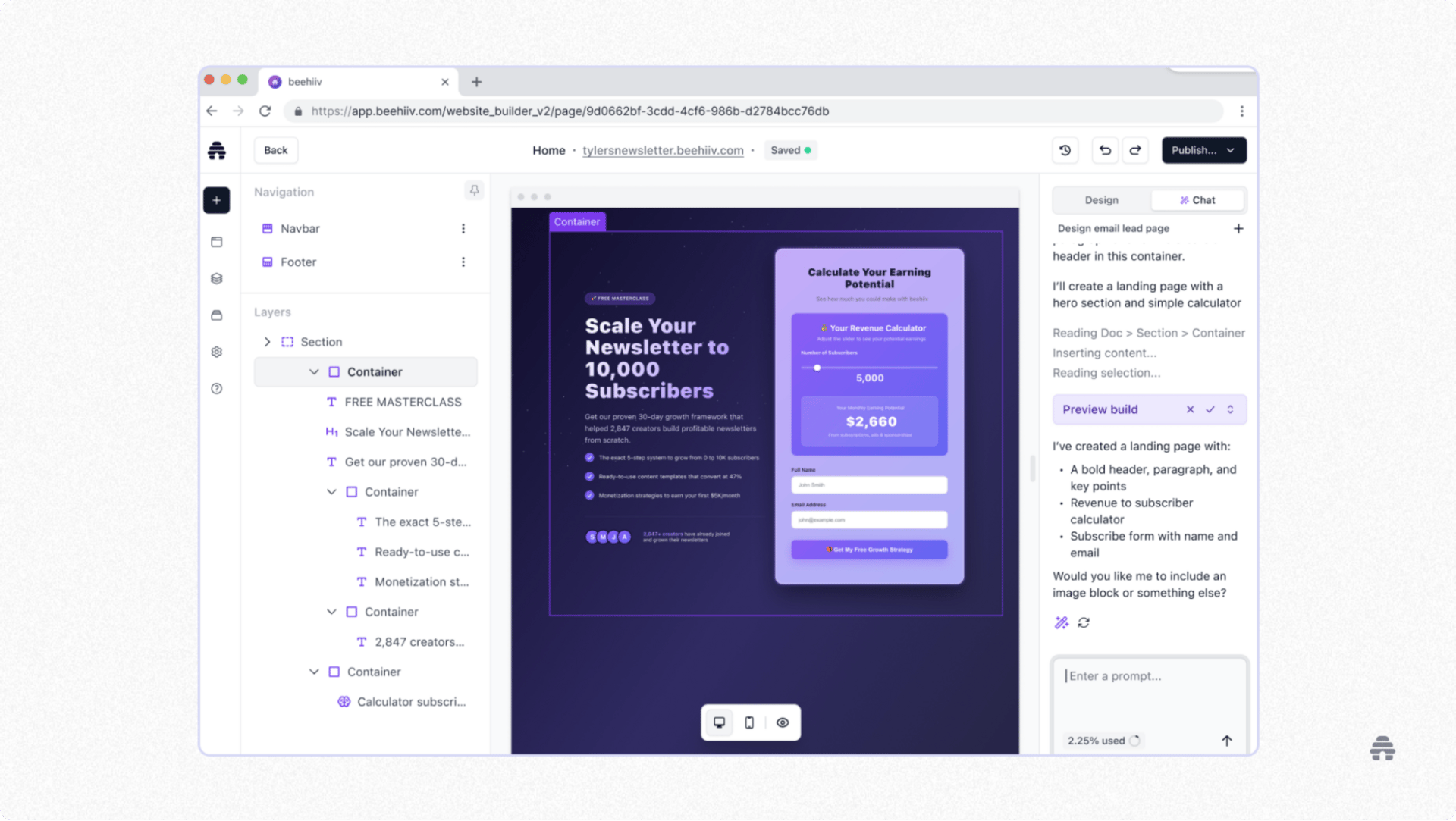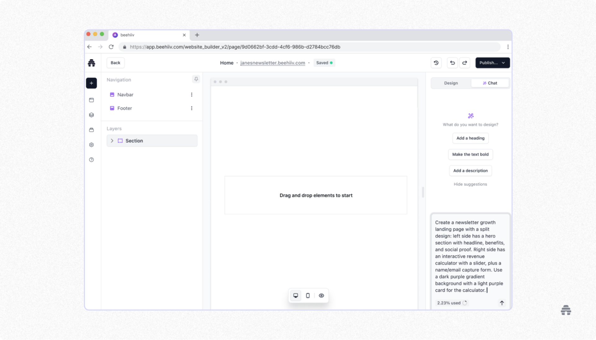 Unlike most AI tools, this builds directly in our user interface (UI), so you can easily adjust it using the web builder.