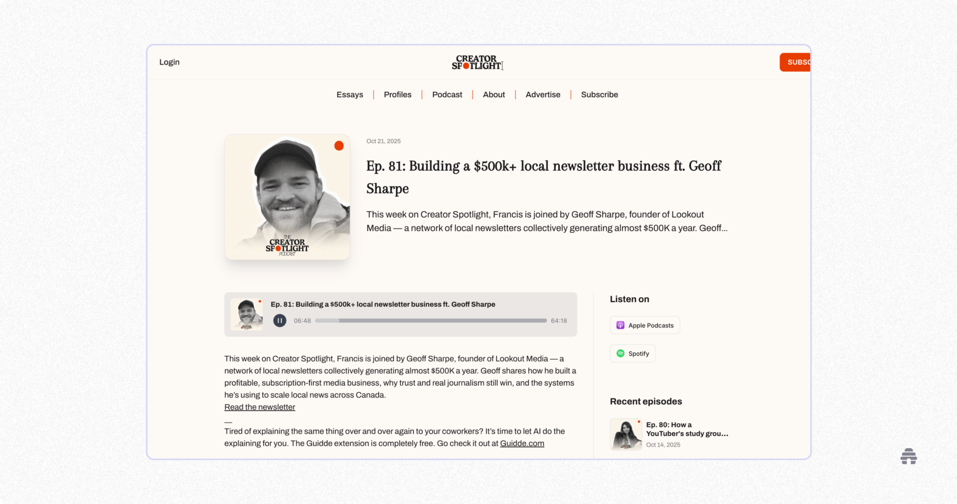 You can import your existing show or start something new, automatically sync new episodes, and host a beautiful podcast website that lives alongside your newsletter and digital products. Everything is organized, searchable, and powered by the same analytics layer you already trust.