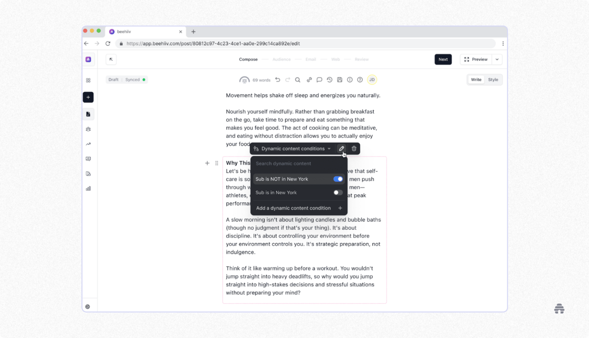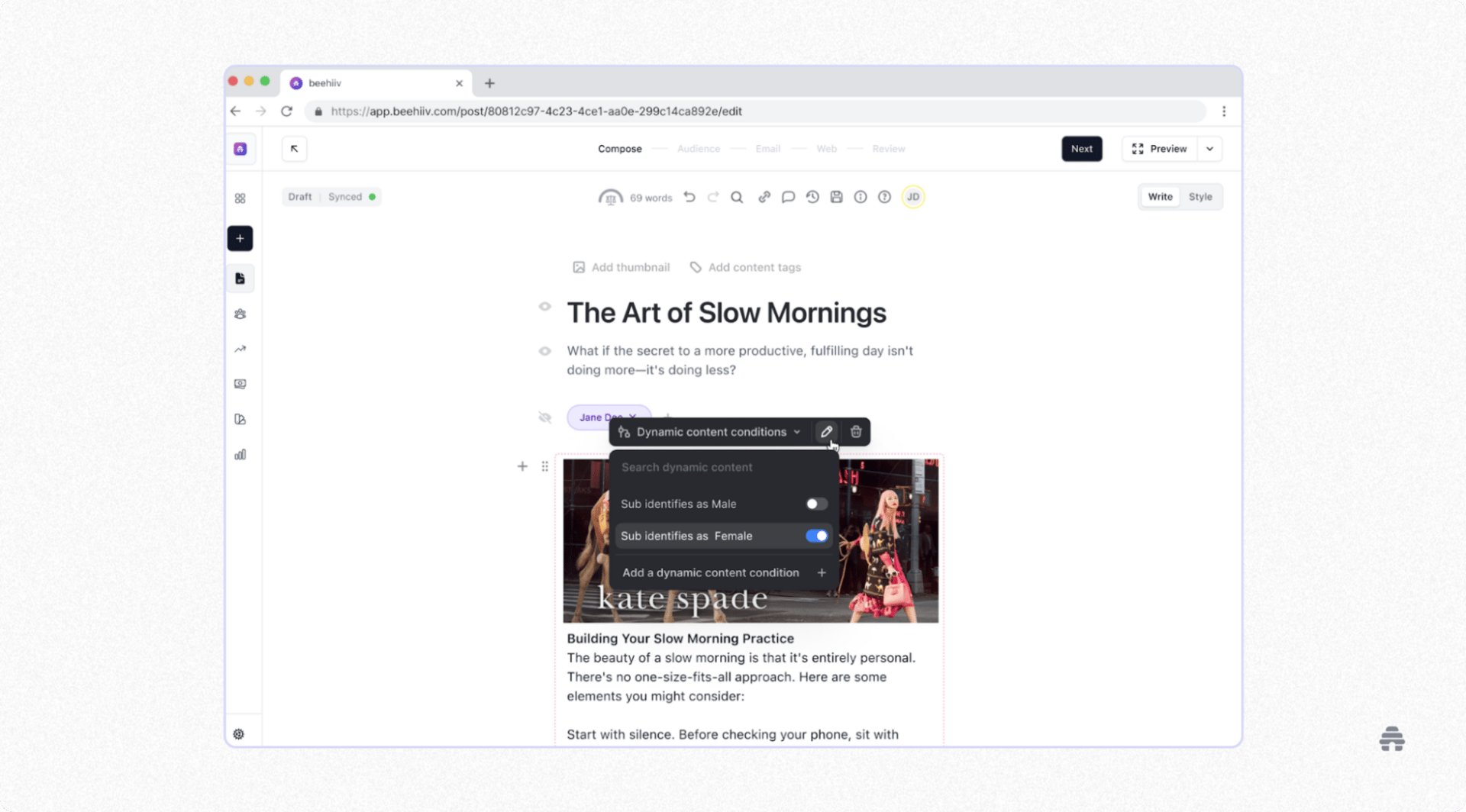 With Dynamic Content, you can tailor what readers see based on location, interests, or subscription tier.