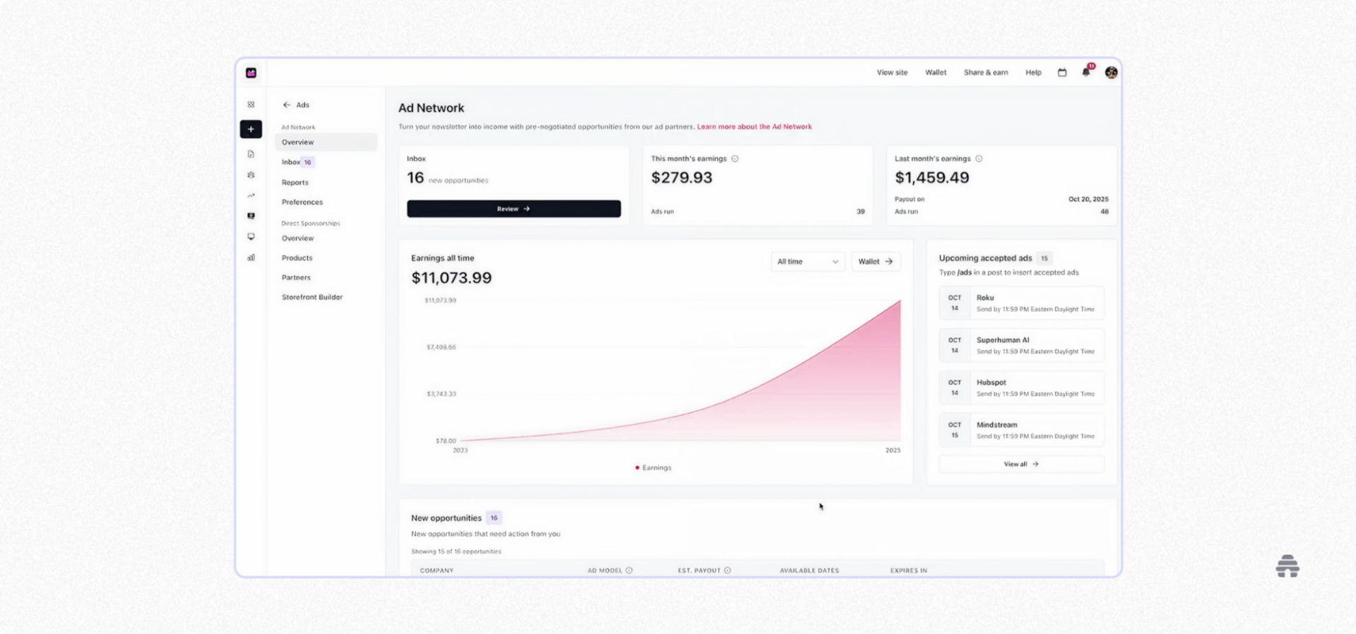 The beehiiv Ad Network connects brands and publishers directly, pairing premium sponsors such as Nike and Netflix with engaged, high-intent audiences.